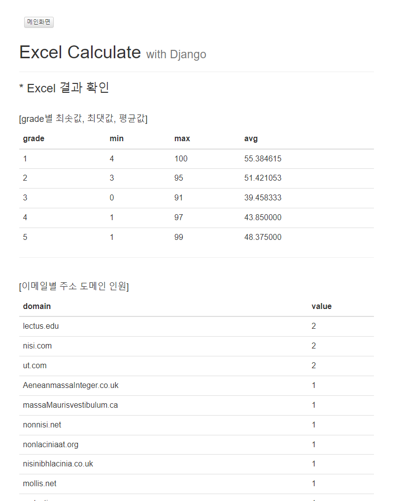 엑셀 정보가 정리되어 출력되는 것을 확인할 수 있다.